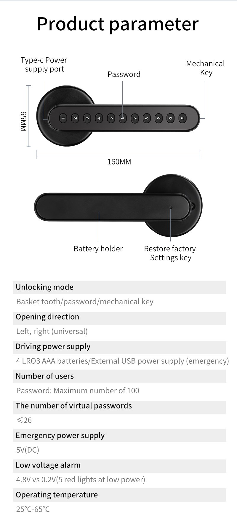 | Unlock Way | Password, Key, APP |