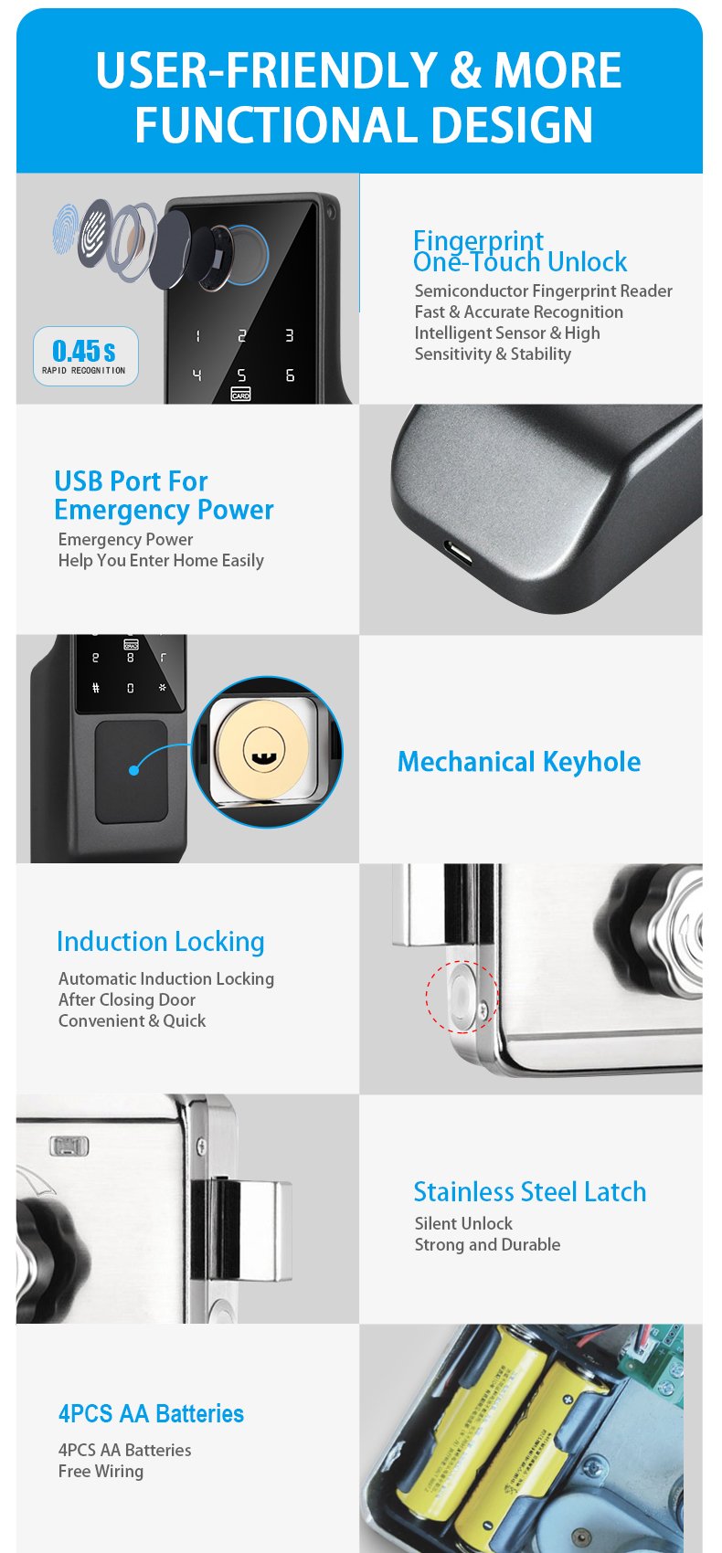 | Unlock Way | Fingerprint, Password, Card, Key, APP |
