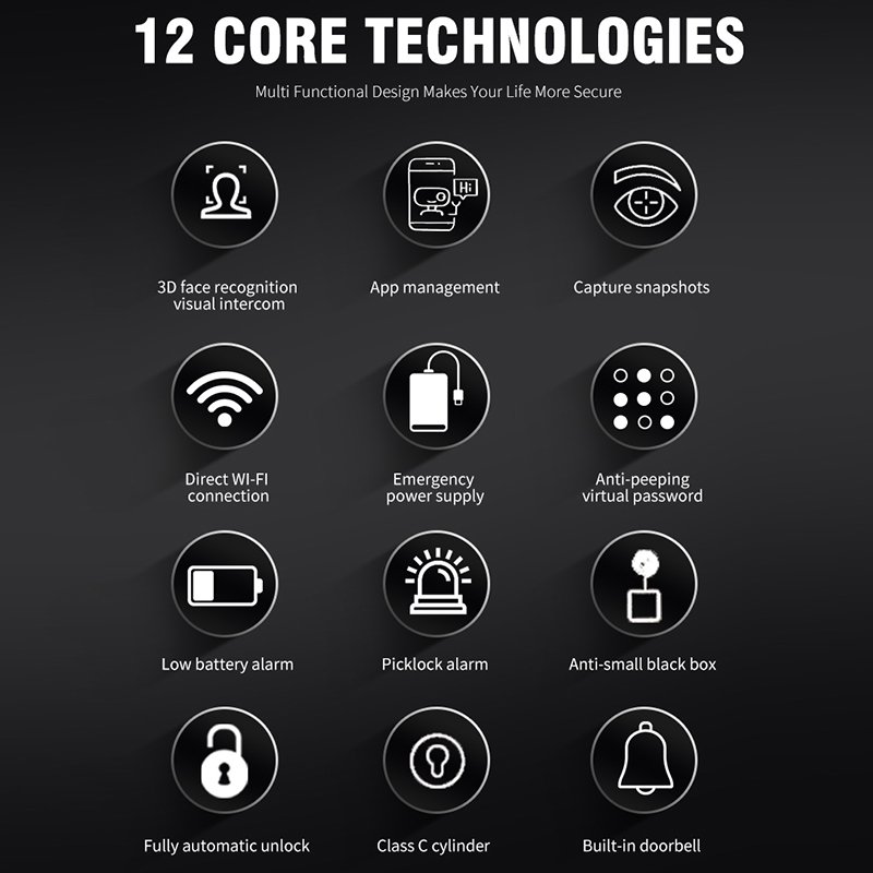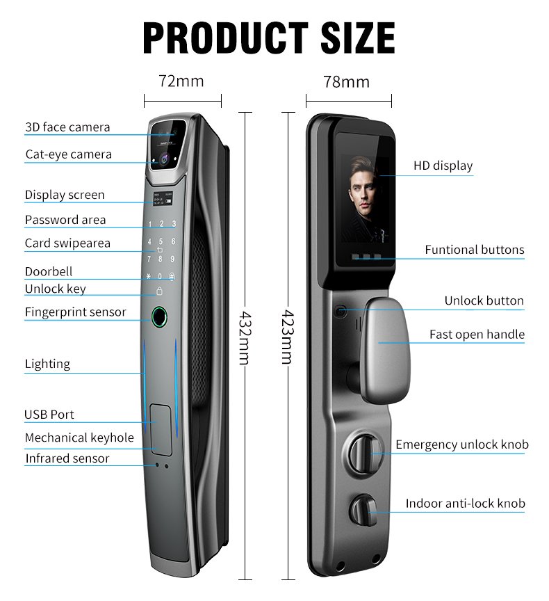 | Unlock Way | 3D Face, Fingerprint, Password, Card, Key, APP |