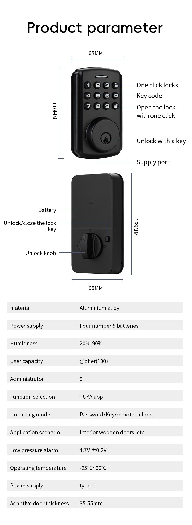 Deadbolt Lock, Digital Door Lock, Door Lock, Waterproof Smart Lock