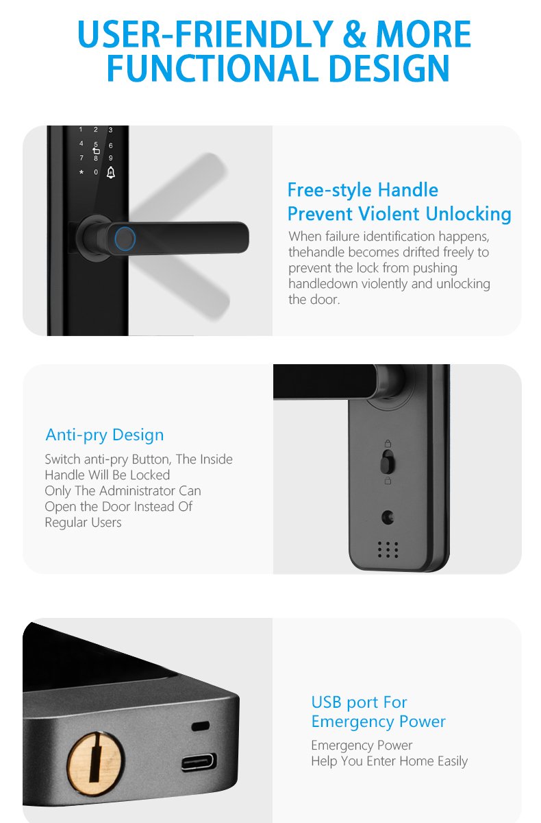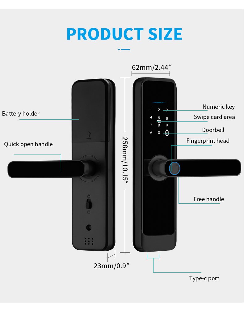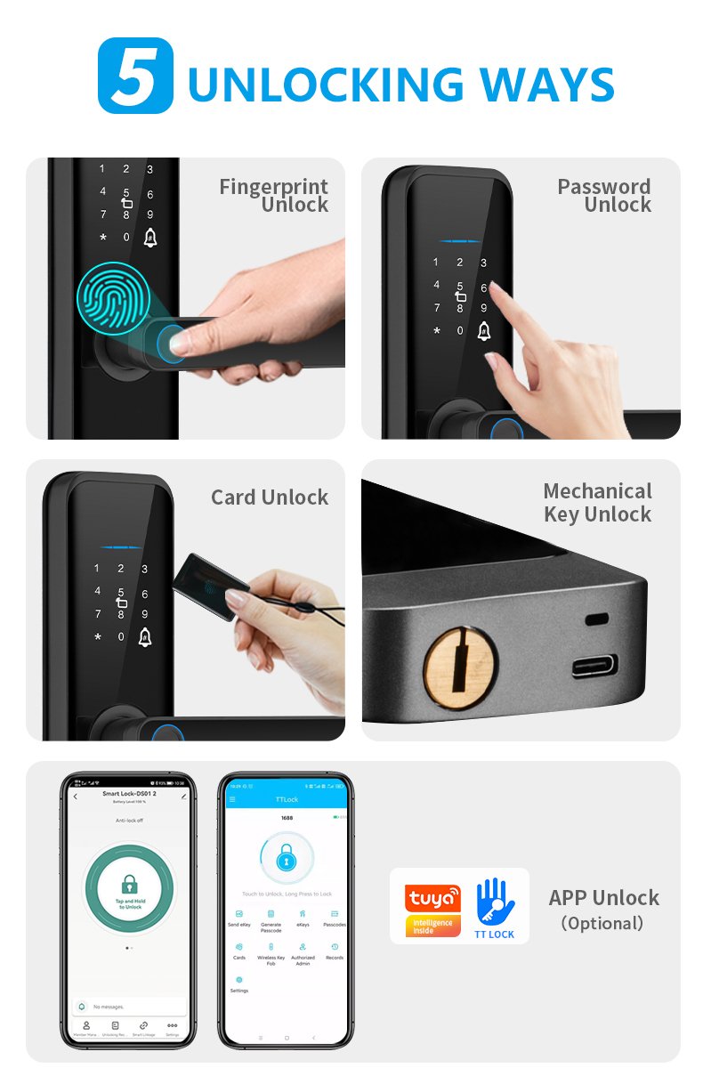 | Unlock Way | Fingerprint, Password, Card, Key, APP |