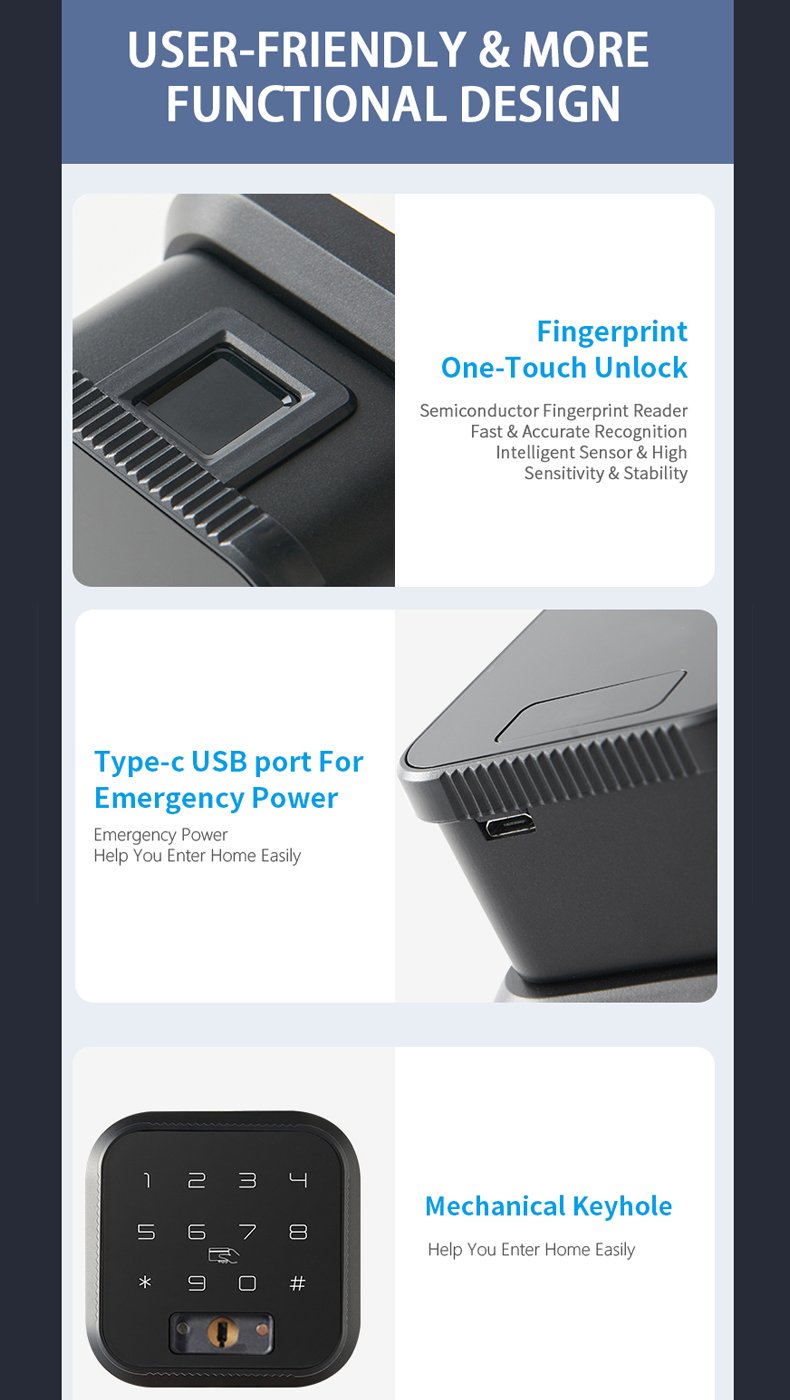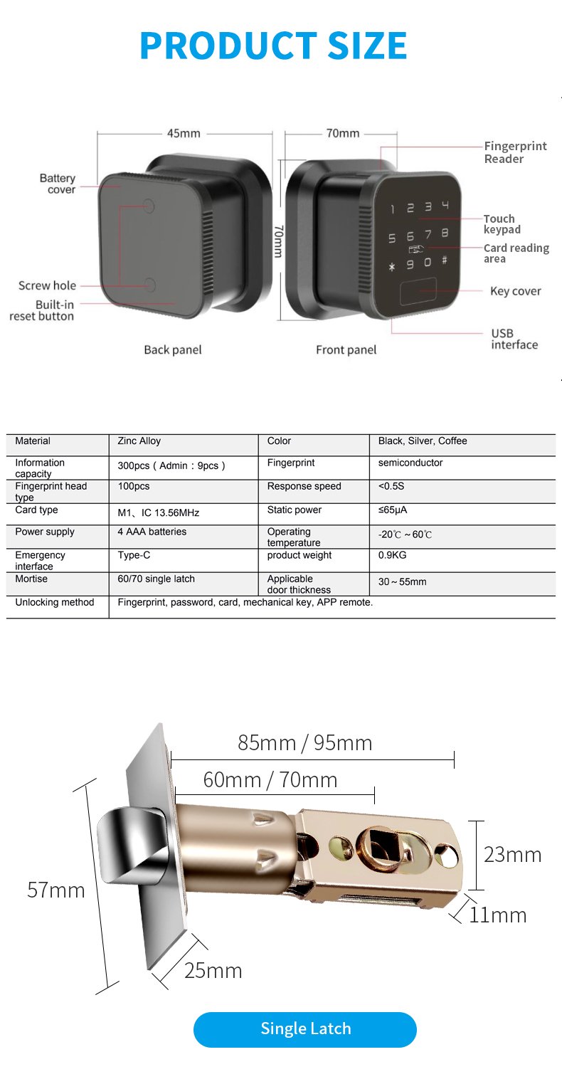 | Unlock Way | Fingerprint, Password, Card, Key, APP |